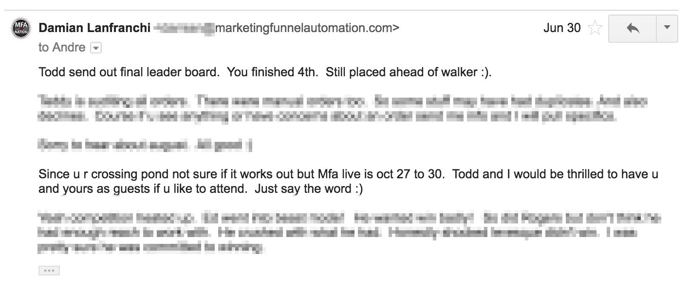 I finished 4th in the launch. Jeff Walker — the creator of Product Launch Formula, who drove 4.3 times as many leads as me (11817 vs. 2762) — finished one spot below me.